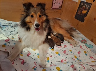 Unique bedeutet einzigartig, es bedeutet, dass es einen jeden von uns genau so nur ein einziges Mal gibt. Nicht nur unser U- Wurf verkörpert das, nein jeder einzelne unserer bezaubernden Shelties, jeder einzelne unserer treuen Begleiter. Wir haben in diesem Jahr wieder sehr schmerzhaft erleben müssen, wie weh es tut Abschied nehmen zu müssen von unseren Vierbeinern. Ganz egal wie groß das Rudel ist, ganz egal mit wie vielen wir Tag täglich durchs Leben gehen dürfen jeder einzelnen spielt eine ganz besondere Rolle, bringt eine einzigarte Persönlichkeit mit sich und ist eins ganz gewiss: unersetzlich. Neues Leben in der Welt willkommen zuhausen zeigt uns aber, dass es dennoch immer weiter geht und dieses Erlebnis nie seinen Zauber verliert. Unsere Josy durfte wieder Mama werden. Sie hat auch bei der Geburt ihres zweiten Wurfes wieder gezeigt, was für eine instinktsichere und starke Hundemami sie ist. Sie verkörpert alles, was für uns einen großartigen Sheltie ausmacht. Als Papa haben wir uns deshalb natürlich auch dieses Mal wieder einen Buben ausgesucht, der dies mit Perfektion ergänzen wird. So können wir eins schon jetzt sicher sagen: Die Welpen aus dieser Verpaarung werden wesensfeste taffe Shelties, mit besten genetischen Gesundheitswerten aus großartiger Aufzucht. Ein jeder, der einem dieser einzigartigen Butzies ein Zuhause schenken darf, kann sich glücklicher kaum schätzen. Wir sind stolz Euch heute unseren U- Wurf vorstellen zu dürfen und dennoch unsagbar traurig, dass wir nur vier von fünf geborenen kleinen Schätzen noch gesund und munter bei uns haben. Leider hat es der letzte kleine bezaubernde Braunbär trotz aller Bemühungen nicht geschafft und ist schon nach nur wenigen Stunden über die Regenbogenbrücke gewandert.