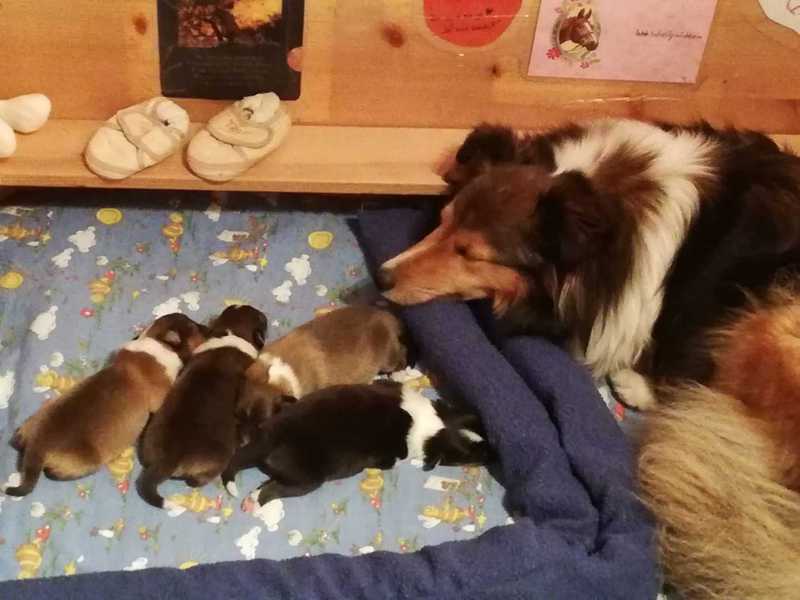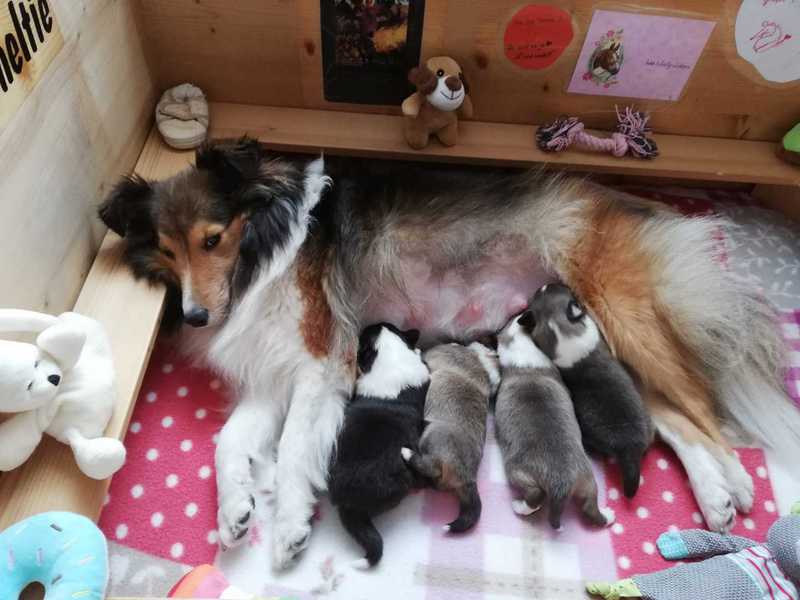 Unique bedeutet einzigartig, es bedeutet, dass es einen jeden von uns genau so nur ein einziges Mal gibt. Nicht nur unser U- Wurf verkörpert das, nein jeder einzelne unserer bezaubernden Shelties, jeder einzelne unserer treuen Begleiter. Wir haben in diesem Jahr wieder sehr schmerzhaft erleben müssen, wie weh es tut, Abschied nehmen zu müssen von unseren Vierbeinern. Ganz egal, wie groß das Rudel ist, ganz egal mit wie vielen wir Tag täglich durchs Leben gehen dürfen, jeder einzelnen spielt eine ganz besondere Rolle, bringt eine einzigarte Persönlichkeit mit sich und ist eins ganz gewiss: unersetzlich einzigartig. Neues Leben in der Welt willkommen zu heißen zeigt uns aber, dass es dennoch immer weiter geht und dieses Erlebnis nie seinen Zauber verliert. Unsere Josy durfte wieder Mama werden. Sie hat auch bei der Geburt ihres zweiten Wurfes wieder gezeigt, was für eine instinktsichere und starke Hundemami sie ist. Sie verkörpert alles, was für uns einen großartigen Sheltie ausmacht. Als Papa haben wir uns deshalb natürlich auch dieses Mal wieder einen Buben ausgesucht, der dies mit Perfektion ergänzen wird. So können wir eins schon jetzt sicher sagen: Die Welpen aus dieser Verpaarung werden wesensfeste taffe Shelties, mit besten genetischen Gesundheitswerten aus großartiger Aufzucht. Ein jeder, der einem dieser einzigartigen Butzies ein Zuhause schenken darf, kann sich glücklicher kaum schätzen. Wir sind stolz Euch heute unseren U- Wurf vorstellen zu dürfen und dennoch unsagbar traurig, dass wir nur vier von fünf geborenen kleinen Schätzen noch gesund und munter bei uns haben. Leider hat es der letzte kleine bezaubernde Braunbär trotz aller Bemühungen nicht geschafft und ist schon nach nur wenigen Stunden über die Regenbogenbrücke gewandert.